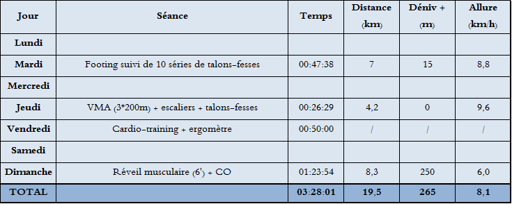 Petit bilan de la semaine dernière. Pas trop envie de développer, en début de semaine le genou m'a refait mal, il faut que je retourne voir le médecin pour décider de la suite à donner... :-(