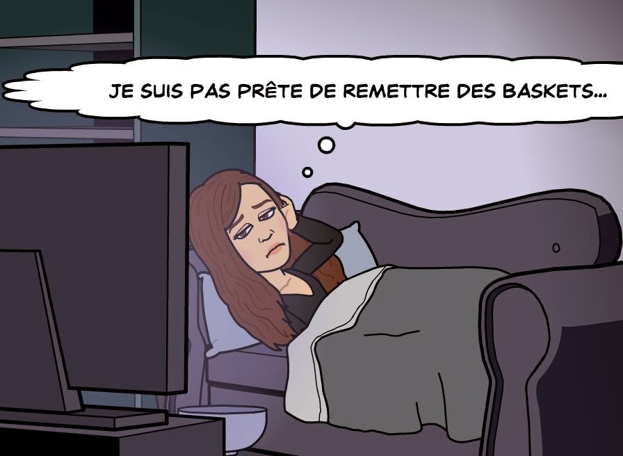 "Si tu es blessée c'est que tu es une vraie sportive" "Tu reviendras encore plus forte" Des phases clichées pour nous réconforter. Mais pas convaincue, moi j'ai juste l'impression d'être foutue ! Ma tête et mon cœur ont beau réclamer de toutes leurs forces les baskets, mon corps en a décidé autrement et faut que j'accepte.